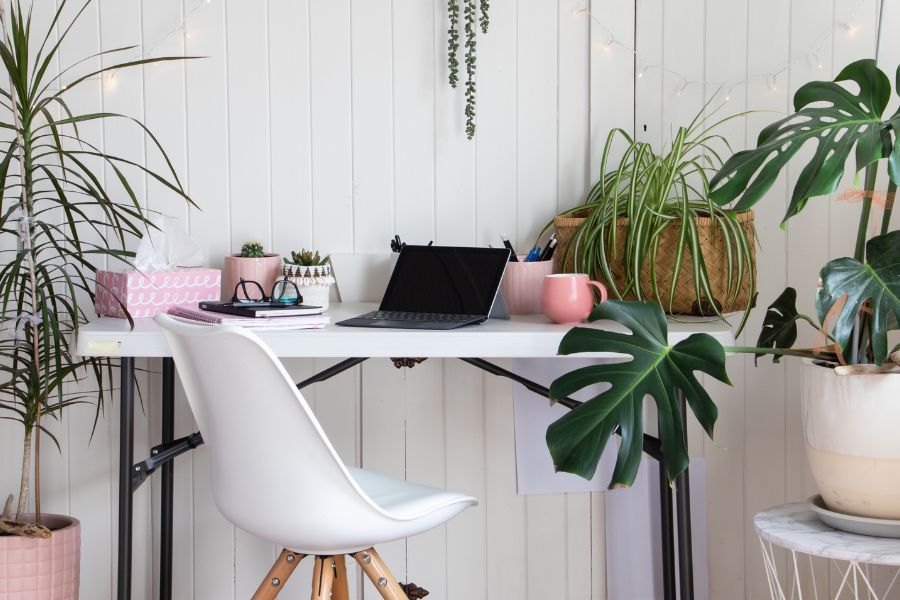 A plant-filled office can boost your mood and creativity by creating a calming and inspiring environment.